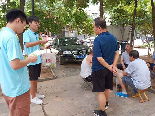 7月17日下午,稷下红船实践团赶赴济阳区垃圾分类试点小区——领秀城小区进行垃圾分类宣传指导单页分发及宣讲活动,在征得社区物业及保安同意后,全体成员分第一、第二小队进入领秀城开始本次活动,对领秀城进行覆盖式宣传。