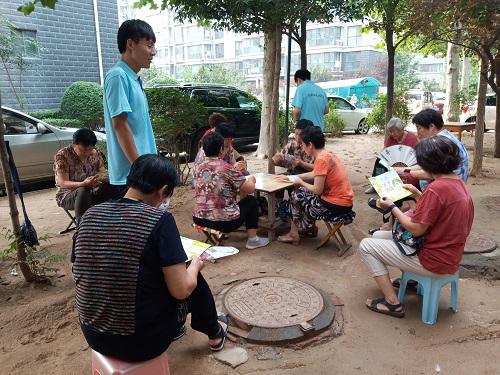 此次活动未采取入户走访形式,坚持不打扰居民正常生活原则,主要针对小区楼下活动区域内居民展开。成员了解到,青年人能够通过网络信息迅速跟上时代潮流,接触垃圾分类相关知识,而老年人获取信息途径较少并未过多了解当下政府提倡垃圾分类政策,因此正需要通过宣传让其加深对垃圾处理重要性认识,掌握垃圾处理常识。成员们通过对其分发单页并进行简单讲解,居民垃圾分类意识及掌握程度获得很大提升。同时,成员们发现作为济阳垃圾分类试点小区,领秀城小区内垃圾分类设施完善,设有垃圾分类指示牌、分类垃圾桶等。成员们与小区住户交谈了解到,普通居民对于垃圾分类仍旧反响平平,居民虽有一点了解但并未完全掌握,且对垃圾分类态度并不积极。成员们翻看分类垃圾桶内垃圾分类情况,发现小区内虽设立四种垃圾类型垃圾桶,但不少垃圾仍未进行分类处理。这一现象说明垃圾分类推广之初,居民意识仍待加强。