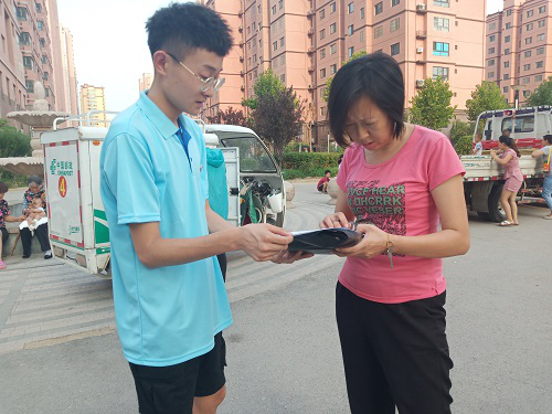 7月14日下午,稷下红船实践团走进银都花园社区,调研垃圾分类现状,并采访居民对垃圾分类了解情况。走访中得知,居民对环境卫生关注较高,表示希望了解更多垃圾分类知识,期待相关政策推进实施。