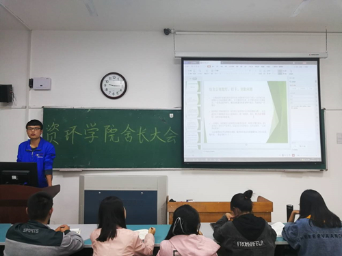 10月13日,利来国际在12号教学楼408教室举行利来国际宿舍长会议。各年级宿舍长参加此次会议,会议由公寓自我管理中心主任马甲栋、公寓管理中心一部部长管世东主讲。