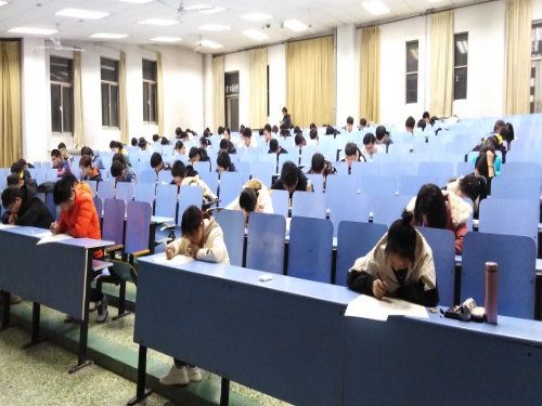 考试开始前,同学们陆续进入教室,按照序号整齐坐好。监考人员强调考试纪律,发放试卷。晚上7点,考试开始,同学们开始答题,他们自觉遵守考试纪律、认真答题,考场氛围安静严肃。晚上8点考试结束,同学们陆续交卷离场,监考人员整理试卷,各班班长将试卷交由老师进行批阅。此次期中考试让同学们有机会检验第一学期高数学习成果,促使他们认识自己学习中的不足,端正学习态度,为接下来的期末考试打下基础。