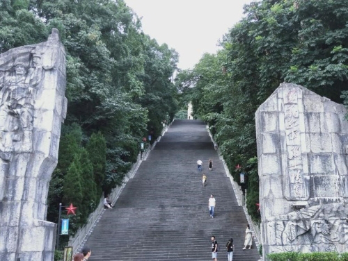 下午,帅平去往遵义市“红军烈士陵园”。“红军烈士陵园”坐落在市内凤凰山周岁麓的小龙山上,陵园前临湘江河,后靠葱茏翠绿的凤凰山,与当年红军鏖战的红花岗、老鸭山遥遥相望。陵园中埋葬着在“遵义战役”中牺牲的19位佚名红军烈士等的遗骸,经过40多年来的维修整理,现已形成颇具规模的烈士陵园。入口两侧高大的红军故事石壁浮雕,辅以自山脚直铺到半山处陵园的数百阶石梯,在尚未登山时便使人心生澎湃。红军山顶的阁楼灯塔,能照遍遵义的每一个角落,也能照亮这座沉睡着烈士们灵魂的陵园。
