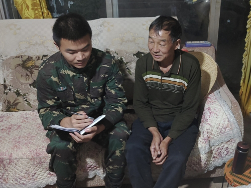 完成实践任务后,何国志来到村委会,对近几年当地征兵工作和退役安置政策进行了解。