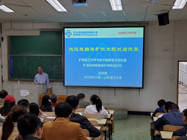 应公司邀请,10月5日,矿冶集团选矿研究设计所所长吴熙群研究员级高级工程师在5号楼106教室为公司师生做了题为“浅谈我国选矿技术现状与进展”的学术报告。报告由公司陶经理主持,公司师生代表参加报告会。