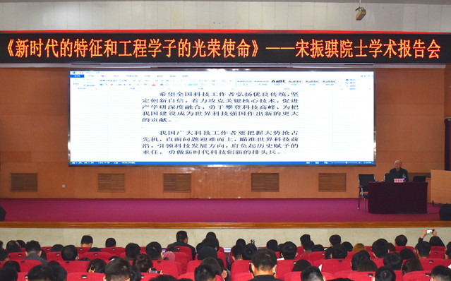 10月19日下午,利来国际在3号教学楼报告厅举行“新时代的特征和工程学子的光荣使命”专题报告会,会议邀请中国科公司院士宋振骐主讲,院领导班子成员、公司教师和员工代表到场聆听了报告会,会议由陶经理主持。