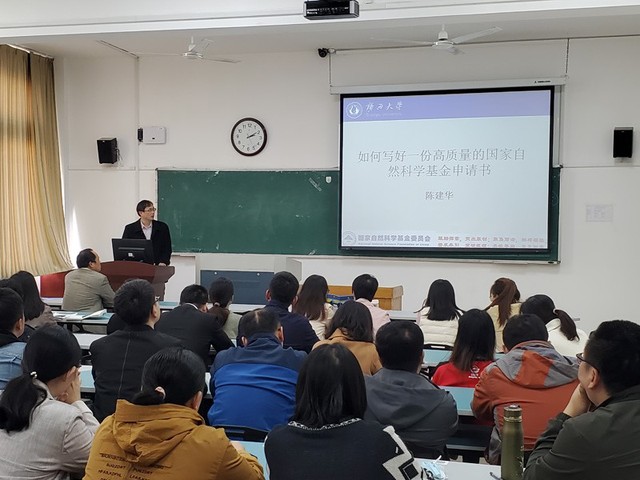 应公司邀请,10月17日,广西大学陈建华教授在12号楼408教室为公司教师做了题为“如何撰写一份高质量的国家自然科学基金申请书”的辅导讲座。报告由公司陶经理主持,全院具有国家基金申报资格的教师参加报告会。