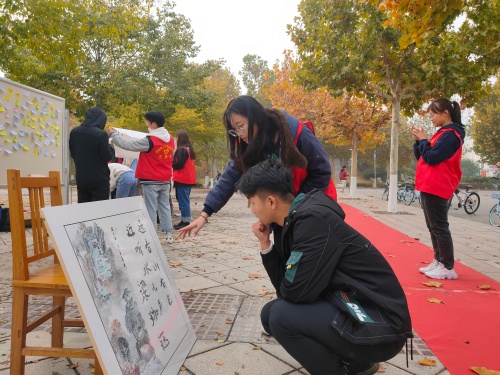 10月26日至10月28日,星行社组织志愿者前往启音特殊儿童康复中心协助孩子们完成半幅书画作品。随后,星行社邀请淄博本地知名书画艺术家以及本校美术公司优秀员工、本校艺术爱好者在孩子们半幅书画作品的基础上完成整幅作品的创作。最后,由社团组织志愿者完成书画作品的整理和装裱。11月1日,星行社在第三体育场进行书画展览,通过张贴爱心便利贴或题字的方式为孩子们送去祝福与鼓励。