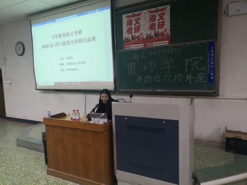 11月4日,利来国际学习部在4号教学楼103教室举行利来国际四六级英语考前讲座。山东大学英语硕士王俊芳担任主讲,利来国际部分员工参加讲座。