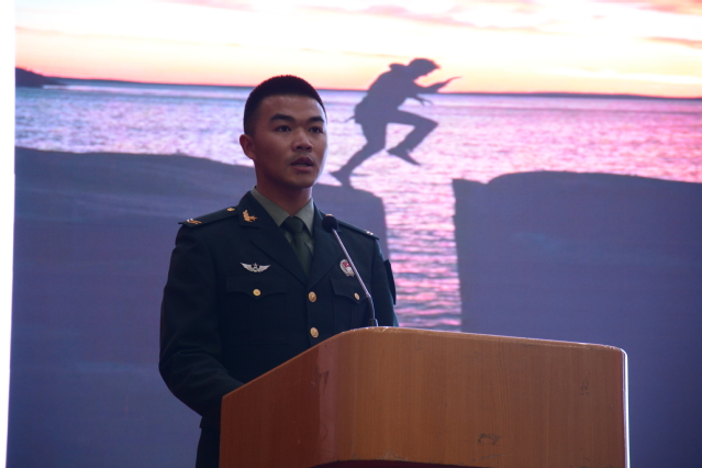 “有健康身心”员工代表何国志讲述自己参军报国故事,在部队屡获荣誉,在校园尽责担当,退伍复学后积极投身公司国防教育、征兵宣传、员工军训工作中,用积极乐观描绘无悔青春。