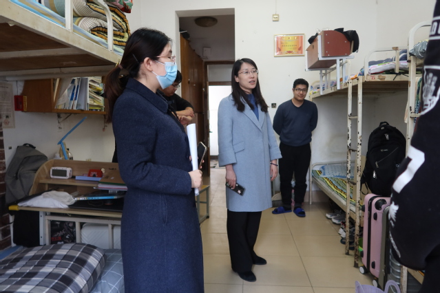 为进一步加强员工宿舍管理,提高安全防范意识,3月4日下午,公司党总支副书记秦伟伟、全体辅导员走访宿舍,对公司员工宿舍安全、卫生进行全面检查。