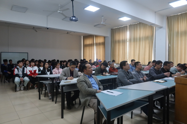 报告会上,刘洪均教授从自身经历出发,围绕“矿山与选矿的概念、自身经历、大型铜矿山建设实践、大型铜矿山管理实践、思考与共勉”等方面向与会师生作了深入阐述。他提到,选矿是人类智慧的体现,是把地球和星球中对人类有用的矿物和元素富集起来,然后经过冶炼和其他手段,利用机械和能量及人类的智慧,把人类需要的物质提取出来;从当前的地球资源储存状况来看,选矿的意义十分重要。青年一代是祖国的未来和希望,深切希望同学们热爱选矿专业并正确对待专业与职业之间的关系,锤炼专业本领,为未来走向工作岗位打下坚实基础。