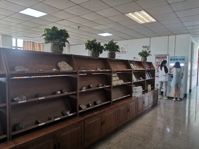 增加了大厅照明灯,安装了窗帘、监控,摆放了桌椅,增加了书架,摆放了毕业生捐赠的书籍以及矿石标本,并进行了环境文化建设,成为员工新的学习场所。