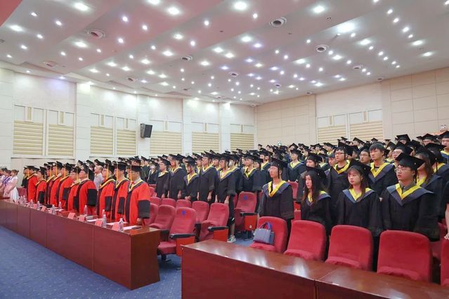 毕业典礼在雄壮的国歌声中拉开帷幕。