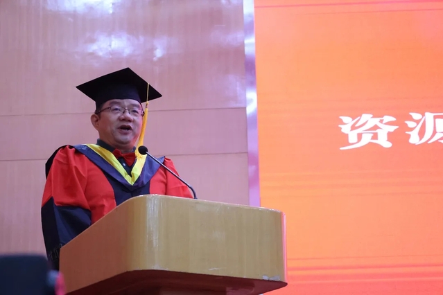 孙荣涛代表公司教师发言,他表示,青春从来就是用来奋斗的,因为幸福就是奋斗出来的,我们资环人既要金山银山,又要绿水青山,这是我们这个时代的最强音,也是最符合我们资环人的身份标签。他希望毕业生不负韶华,砥砺前行,在祖国的山水间绽放光彩,在中国的大地上书写华章,为中华民族的伟大复兴添砖加瓦!
