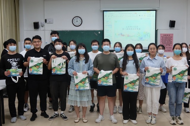 赛前,主持人介绍了举行本次比赛的意义和规则。竞赛分“过关斩将”“知己知彼”“一决高下”等三轮进行,每轮优胜者晋级比赛的下一环节。在“过关斩将”和“知己知彼”比赛环节中,选手根据抽取题卡的内容限时回答问题,各参赛选手准备充分,流利作答,展现了良好精神风貌。第三轮比赛是抢答赛,题目类型涵盖生态保护、环保知识技能等多方面内容,现场竞争紧张而激烈,选手们各展风采,充分展现了山理工学子充足的知识储备。经过激烈角逐,耿嘉旭、苏雨菲、周珊珊三名同学分别获得冠、亚、季军,评委老师为获奖选手颁奖并合影留念。