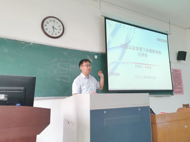 张晓君老师以《工程认证背景下的课程考核与评价》为题,针对参加工程教育专业认证中对考核方式的要求及教学档案整理工作提出了要求,特别是对考试题目设计、目标达成度评价、考核方式合理性评价等内容进行了详细讲解。