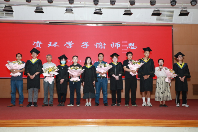 在“谢师恩”环节,毕业生代表为各系专业课老师代表和毕业班辅导员送上鲜花祝福,感谢师恩。温暖的音乐旋律中,各位老师为毕业生现场送上祝福,现场温情满满,掌声不断。