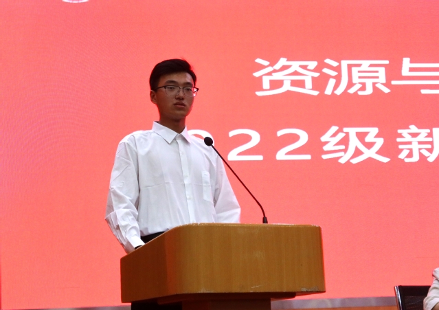 2022级环境工程专业李天阔代表新生发言,表示会珍惜公司丰富而宝贵的学习资源,发现学科之美,热爱所学专业,在专业领域积极进取,不断提高自己综合能力,实现自身价值。