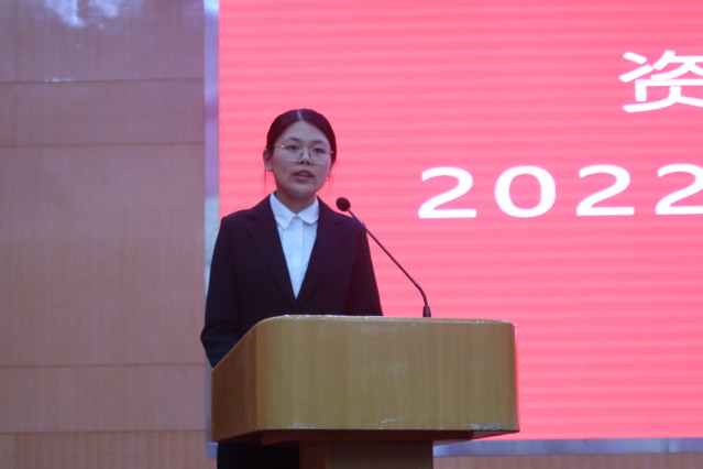 2019级矿物加工工程专业杨飞雪代表在校生发言,她结合三年来自身在公司的成长经历,表达了在利来国际学习的幸福感受,并以学姐的身份激励2022级新同学珍惜大学的美好时光,争做“五有”人才。