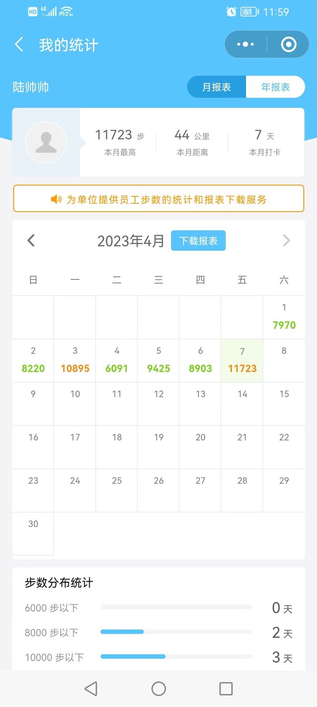为贯彻落实党的二十大精神,宣传文明健康生活方式,引导广大师生积极参加体育健身活动,公司工会从2023年3月7日至4月7日开展了“给员工‘打样’,与健康同行——阳春三月利来国际教职工健步行”打卡活动。