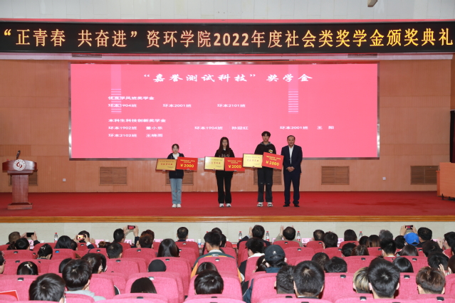 嘉誉测试科技有限公司副总经理王强为获奖集体和个人颁发“嘉誉测试科技”优良学风班、科技创新等奖学金