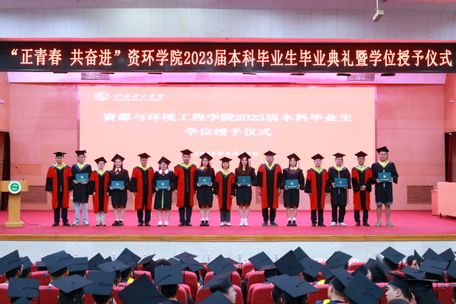 学位授予仪式上,公司班子、学位评定分委员会为采矿工程、矿物加工工程、环境工程、勘查技术与工程等4个专业的毕业生拨穗正冠,授予学士学位。