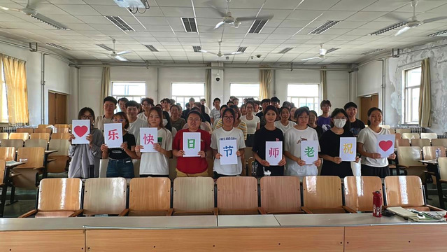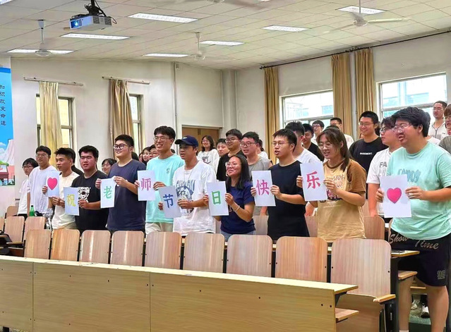 “老师,您辛苦了!”“老师,祝您节日快乐!”……教师节前夕,同学们开展“课堂上我为老师送祝福”暖心活动。教室黑板上书写着“庆祝教师节”的祝福语,简单质朴的话语饱含着同学们的片片真情;有的同学将想对老师说的话写在小小便利贴上,用“悄悄话”的形式向老师深情“告白”,一笔一画诉说着浓浓的师生情;同学们还为老师精心制作了祝福的标语,表达对老师的感激和祝福。(单琳耀)