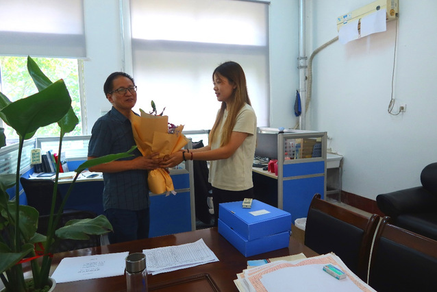 9月8日,在第39个教师节来临之际,公司领导班子到1号实验楼看望慰问公司高层次人才以及各系教师,为他们送上鲜花及教师节的亲切问候。