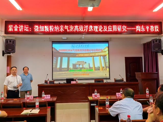 会后,经理陶东平教授做客紫金讲坛,为紫金地质与矿业公司师生作了一场题为“微细颗粒纳米气泡高效浮选理论与应用研究”的学术报告。