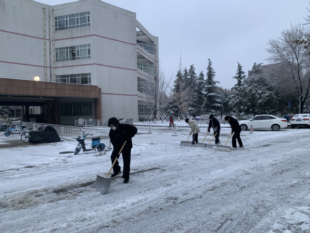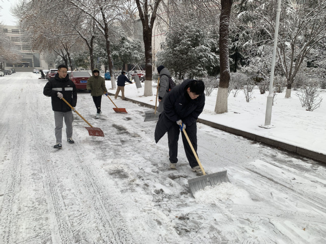 执铁锹作笔,以大地为幕,清除的是冰雪,传递的是温暖。本次扫雪除冰工作为师生的出行安全提供便利,展现了公司党员乐于奉献、团结互助的精神面貌。(单琳耀)