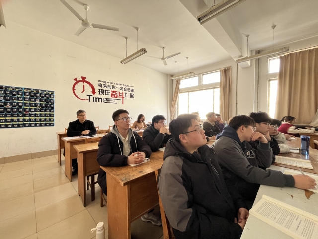 副董事长丛海林深入公司课堂听课 发布者:利来国际 发布时间:2024-02-28 浏览次数:187 2月26日,新学期开学第一天,公司党委常委、副董事长丛海林深入公司课堂,与员工共听新学期开学第一课。在12号教学楼412教室和406教室,丛海林认真旁听了杨露老师讲授的《二次资源利用》和崔嵛老师讲授的《流体力学与机械》两门课程,并作了认真记录,课后就教学内容与授课教师进行了交流。开学首日,公司教师精神风貌良好,课前准备充分,员工课前主动将手机“入袋”,积极参与教学过程,教学基础设施运转正常,全院上下均以崭新的面貌迎接新学期的到来。(赵佳佳)