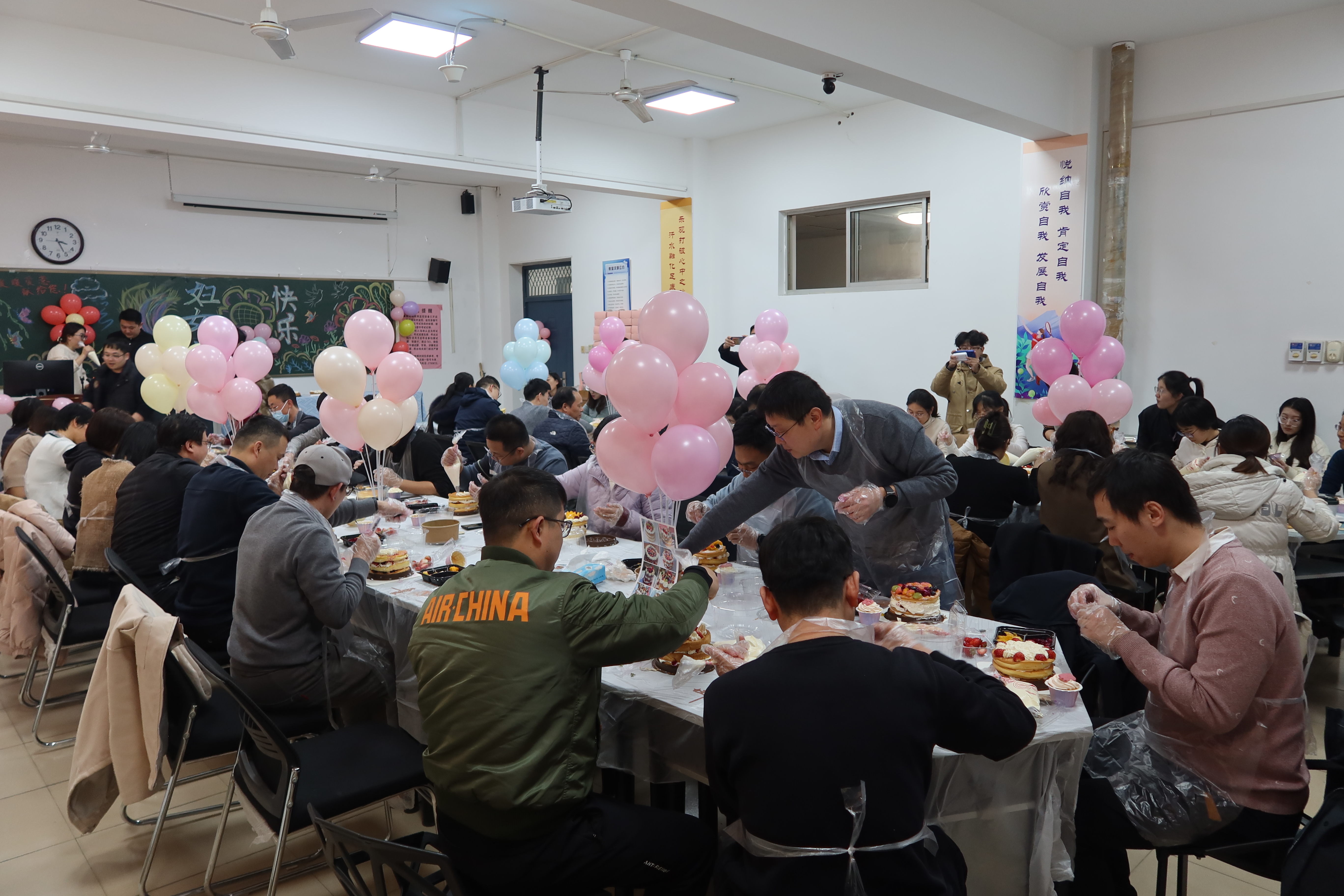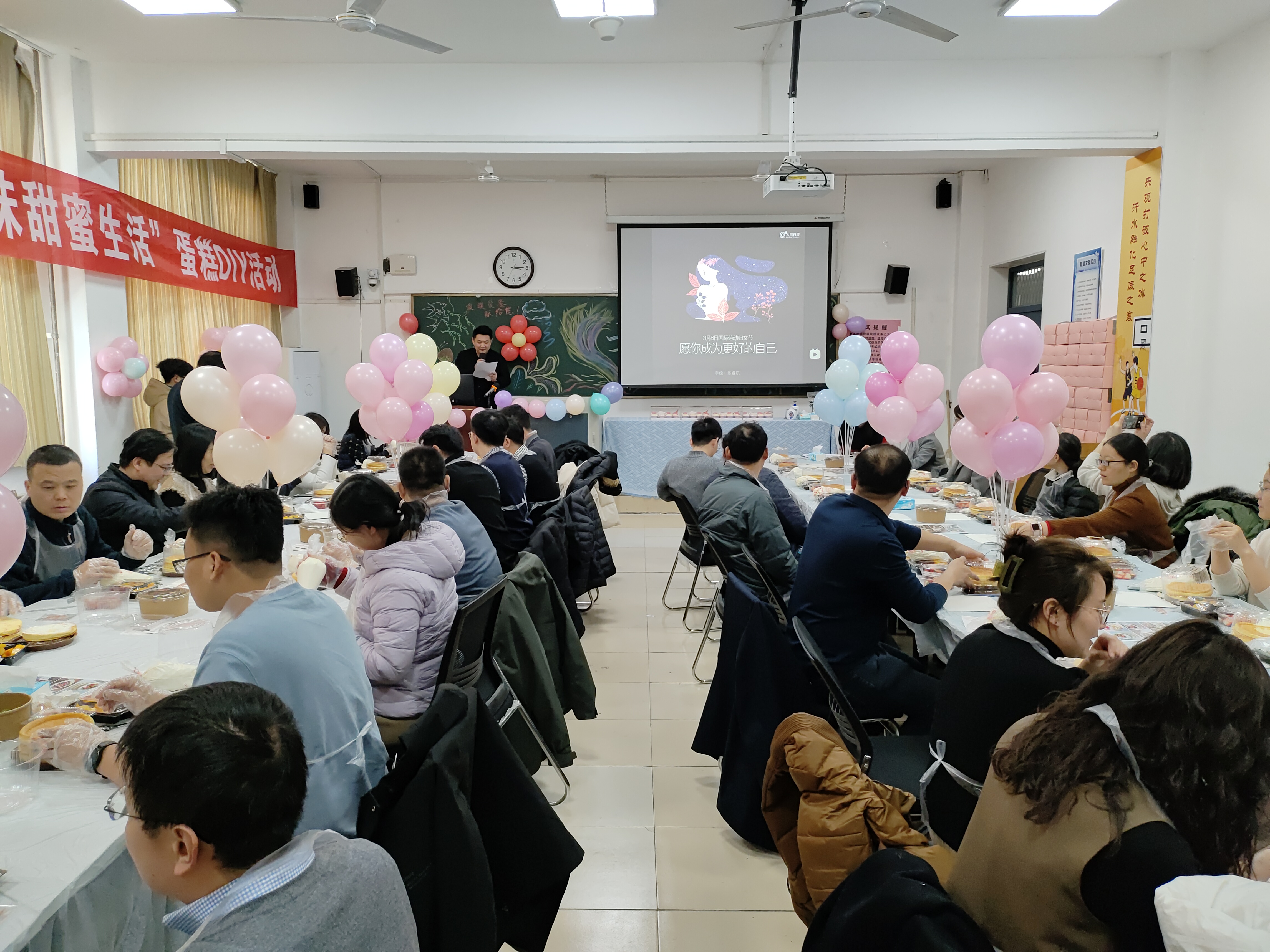 3月8日下午,利来国际工会在12号楼408教室开展庆祝三八节“品味甜蜜生活”蛋糕DIY活动,公司教职工参加活动。活动由辅导员单琳耀主持。