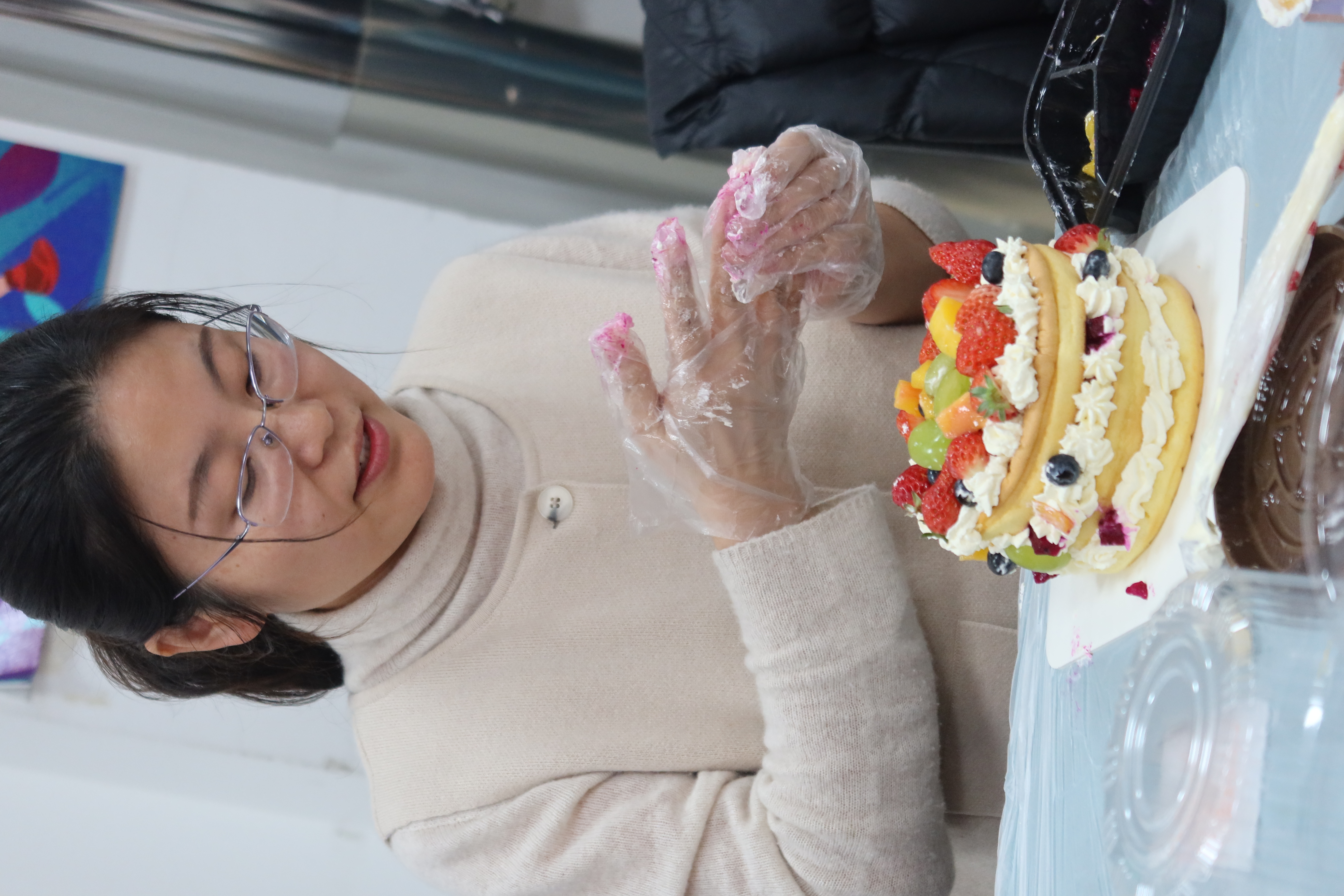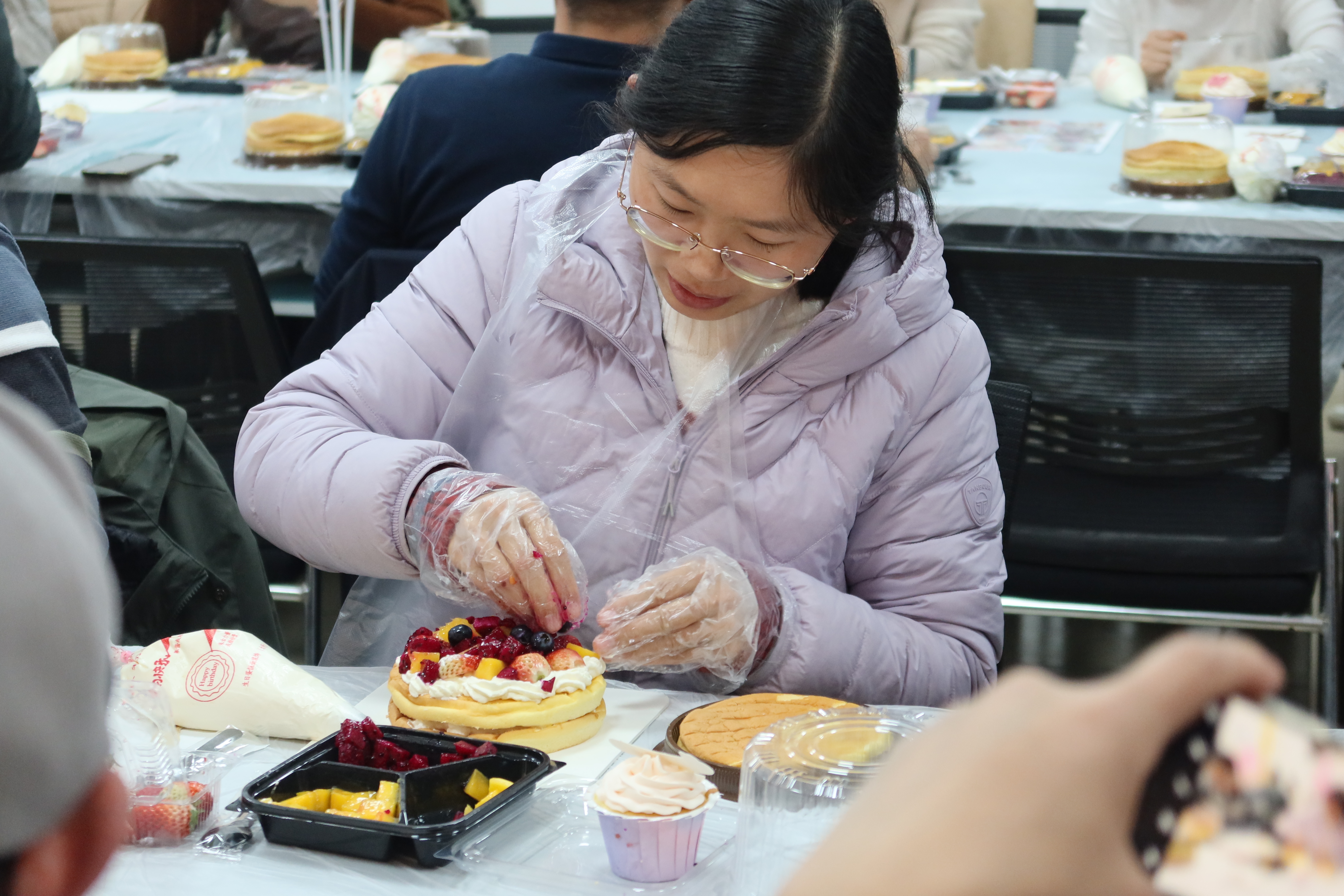 大家奇思妙想,用奶油、各类水果对蛋糕胚进行装点,现场气氛其乐融融。随后各式各样、五彩缤纷、香气四溢的精美蛋糕在老师们的手中诞生。8位老师制作的蛋糕在样式评选中获奖,陶东平经理为老师们颁奖并送上精美小礼品。老师们的欢声笑语和蛋糕的香甜味道交融在一起,汇聚成一股幸福的力量,激励大家用心工作、幸福生活。(单琳耀)