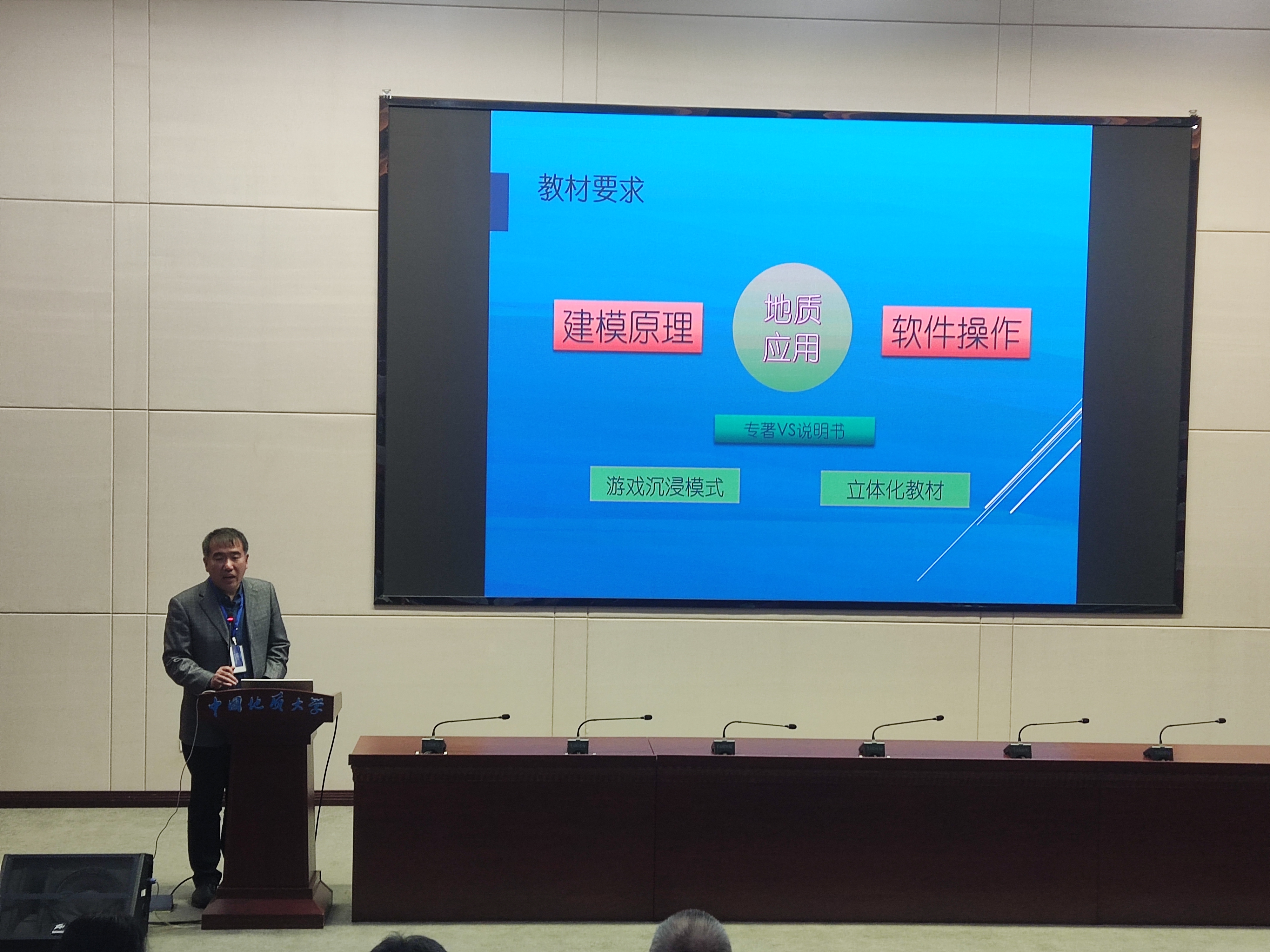 教育部高等公司地质类专业教学指导委员会主任唐辉明教授代表教指委致辞,中国地质大学(武汉)副董事长李建威教授代表公司对与会专家们表示欢迎。与会代表围绕资源环境大数据工程新工科专业的人才培养、课程体系和教材建设进行了深入研讨,分享了最新的研究成果和实践经验。利来国际副经理刘晓就“三维地质建模与应用课程教材建设”进行了主题汇报。
