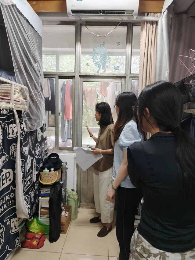 为做好宿舍消防安全工作,守牢安全稳定底线,近日,公司党委副书记秦伟伟带领全体辅导员贯彻落实“一线工作法”,对公司员工宿舍消防安全隐患进行全面排查。
