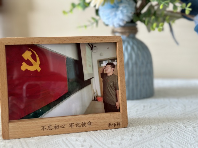 党支部书记为毕业生党员送上精心准备的纪念品。党支部将毕业生党员被党组织接收为预备党员或预备党员转正时的照片定制成刻有“不忘初心 牢记使命+个人姓名”的相框。纪念品不仅表达了对毕业生党员同志在支部工作中辛勤付出的感谢,用仪式感增强了毕业生党员的归属感,同时也希望毕业生党员同志能切实将个人理想追求融入党和国家的事业中,继续在前进道路上书写壮丽华章。(赵佳佳)