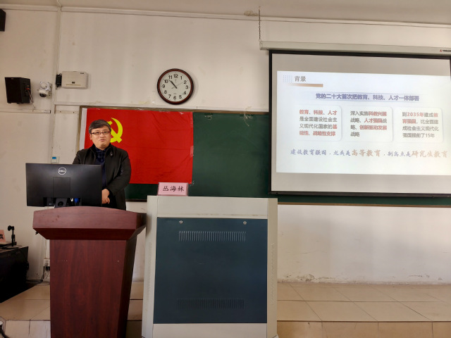 随后,丛海林以“聚焦发展需求 着力提升公司产品质量”为题讲授专题党课。党课围绕党的二十大对教育、科技、人才的一体部署和习近平总书记对研究生教育工作作出的重要指示,引领大家深刻认识研究生教育承担的历史重任和发展趋势。丛海林勉励同学们要积极响应时代呼唤、主动拥抱变化、适应变化,挺膺担当、团结奋进,努力提升学历,争做国家需要的科技人才,共同为科技强国建设作出更大贡献。