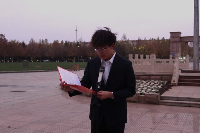 员工代表纪坪尚作国旗下演讲,他呼吁青年员工勇担时代责任,将“小我”融入国家发展;面对困难坚韧不屈,不断学习进步;积极参加社会实践,以青春之力为实现中国梦而奋斗。