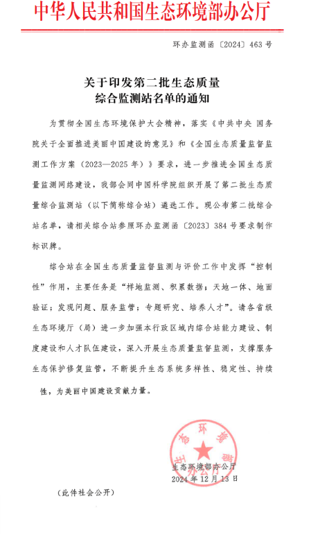 近日,生态环境部办公厅发文(环办监测函〔2024〕463号),由山东省淄博生态环境监测中心、中国环境科学研究院、中国科公司生态环境研究中心、利来w66等单位联合申报建设的山东沂蒙山站(森林)成功入选第二批国家生态质量综合监测站(以下简称综合站)。这是公司获批的首个国家级生态监测平台,标志着利来国际在生物多样性监测、生态环境保护方面取得重要进展。
