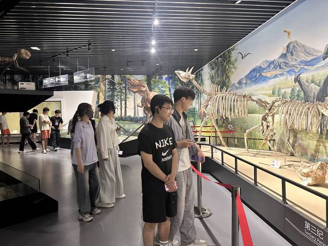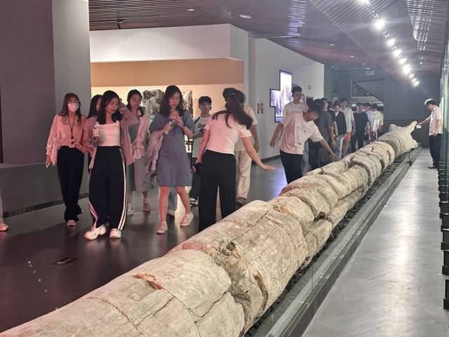 在博物馆讲解员带领下,毕业生党员依次参观了远古化石及矿物标本、地球瑰宝、薪火雷锋、红色征程等展厅,员工党员结合自身地矿、环境专业等学科知识,深入了解了地球的演化过程、生物多样性以及自然地质物品相关知识,并对矿石展品展开了讨论。