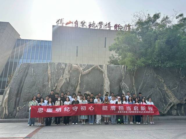 为扎实开展深入贯彻中央八项规定精神学习教育,强化毕业生党员理想信念教育,激励青年学子勇担时代使命,5月21日下午,资源与环境工程公司党委组织2025届毕业生党员赴淄博市傅山自然地质博物馆开展“思廉明纪守初心 挺膺担当启新程”毕业生党员主题党日活动,院团委书记、员工第一党支部书记赵佳佳带队参加。