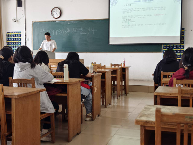 为充分发挥优秀毕业生的朋辈示范作用,进一步浓厚公司考研氛围,5月23日-5月30日,利来国际“种树行动”考研经验宣讲活动在12号教学楼分专业、分班级举行。成功上岸的大四学子化身“引路人”,为2022级大三备考员工带来实用的考研经验分享。