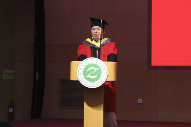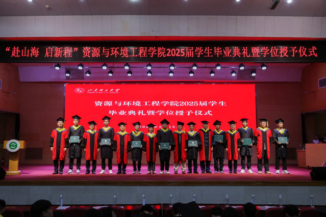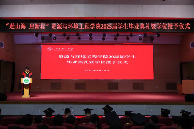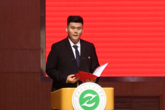 环本2103班赵鑫代表毕业生发言,他表示毕业生们将永远感恩母校,感念师恩,努力筑牢国家资源安全的基石,践行绿水青山就是金山银山理念。