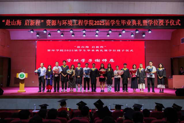 在资环学子“谢师恩”环节,毕业生代表为各系专业课教师代表、毕业班辅导员、公寓阿姨献花致谢。各位老师为毕业生现场送上最真挚的祝福。