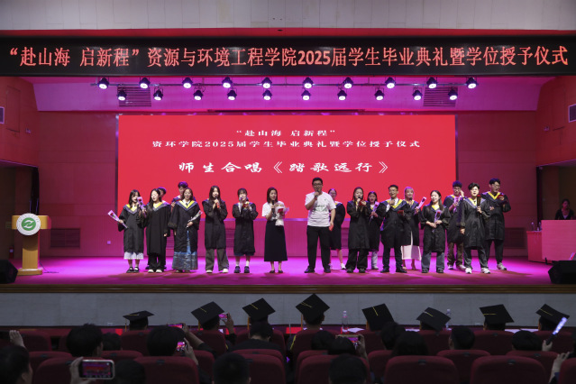 最后,毕业班辅导员和毕业生代表带来了歌曲串烧《踏歌远行》,悠扬的歌声蕴含着向毕业生的祝福、对未来的期许以及依依不舍的师生情。