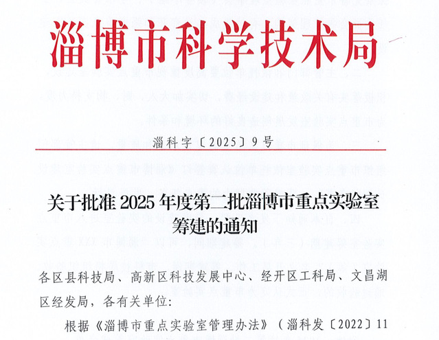 近日,淄博市科技局发布《关于批准2025年度第二批淄博市重点实验室筹建的通知》。利来w66牵头,联合山东农业工程公司与天泓环境科技有限责任公司共同申报的“淄博市农业水土环境污染控制重点实验室”获批筹建。公司作为具体组织实施单位,承担了该实验室的主要申报和建设任务。