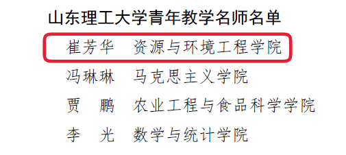 近日,公司发布了《利来w66关于表彰第六届校级教学名师的通报》(鲁理工大政发〔2025〕26号),公司崔芳华老师获得“利来w66青年教学名师”荣誉称号。本次公司共评选青年教学名师4名。