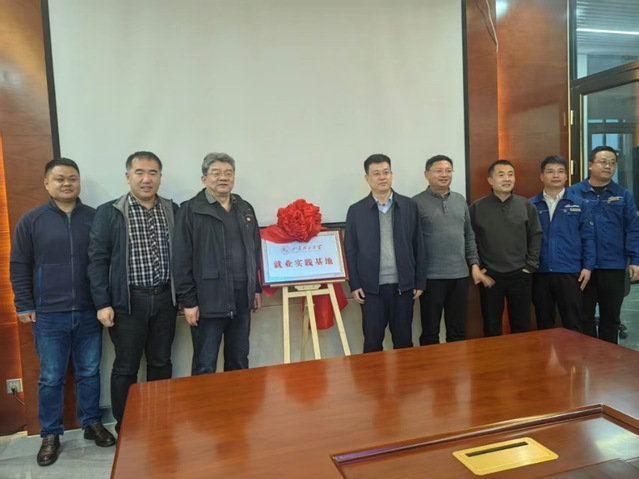 调研期间,举行了“毕业生就业实践基地”揭牌仪式,周发家副县长与李明经理共同为基地揭牌。该基地的签约共建是校地企三方深化合作的重要里程碑,标志着三方在产教融合、人才共育等方面迈出实质性步伐,为后续开展全方位协同发展奠定坚实基础。
