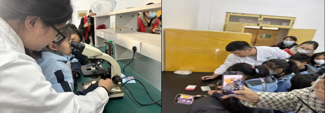 在微生物实验室,在环境工程专业研究生帮助下,孩子们操作显微镜。当植物细胞的细胞壁、液泡、叶绿体等清晰呈现时,他们满脸惊喜好奇。从聆听理论到探索未知,沉浸式体验让孩子们感受科学魅力,埋下追求真理、勇于探索的梦想种子。